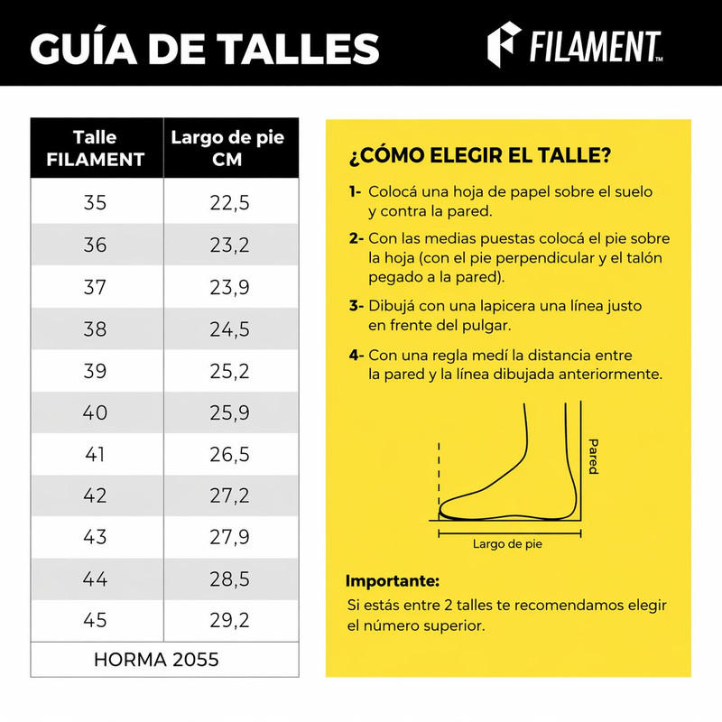 Recomendamos solictar un número más del que calza.